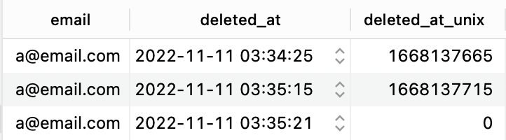 deleted_at_unix int(10) unsigned NOT NULL DEFAULT 0