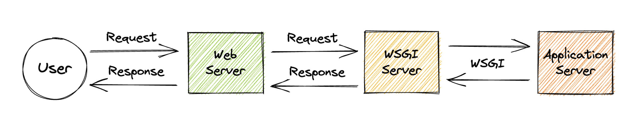 可以將 WSGI Server 理解成處理 HTTP RequestPython 可理解的 Input/Output 的中繼站(Middleware)。